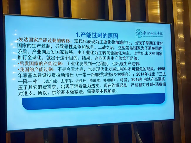 论坛伊始,合肥经济学院金融学院院长方小教教授发表演讲。方教授立足国内外经济环境,从政策导向、市场变化、产业升级等多维度展开分析,深入解读了当前经济形势对企业发展的影响,并就企业如何适应趋势、把握机遇提出了前瞻性建议。其观点为与会企业提供了宏观层面的战略思考框架,助力企业科学决策、稳健前行。